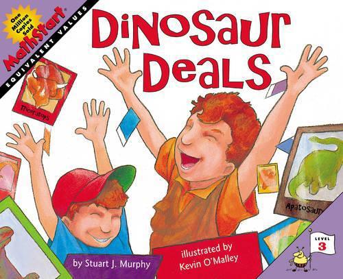 Lets Make a Deal! Mike and his little brother, Andy, are headed for the Dinosaur Card Trading Fair. They're ready to wheel and deal. It's, 4 Stegosaurus for 1 Triceratops, and 2 Triceratops for 1 Allosaurus. But can they get what they really want: the tremendous, gigantic, ferocious, Tyrannosaurus rex? The math concept of equivalency -- understanding when values are equal -- is introduced in this fast-paced story as two brothers try to beat the clock and make the ultimate trade.