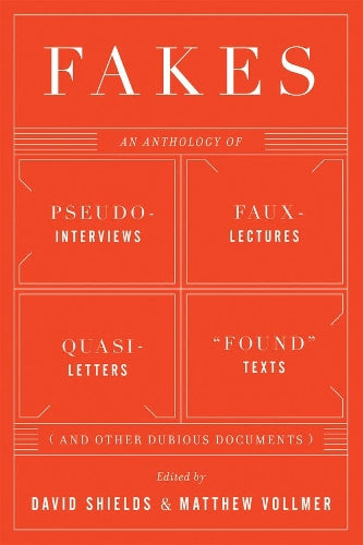 In our bureaucratized culture, we’re inundated by documents: itineraries, instruction manuals, permit forms, primers, letters of complaint, end-of-year reports, accidentally forwarded email, traffic updates, ad infinitum. David Shields and Matthew Vollmer, both writers and professors, have gathered forty short fictions that they’ve found to be seriously hilarious and irresistibly teachable (in both writing and literature courses): counterfeit texts that capture the barely suppressed frustration and yearning that percolate just below the surface of most official documents. The innovative stories collected in Fakes—including ones by Ron Carlson (a personal ad), Amy Hempel (a complaint to the parking department), Rick Moody (Works Cited), and Lydia Davis (a letter to a funeral parlor)—trace the increasingly blurry line between fact and fiction and exemplify a crucial form for the twenty-first century.