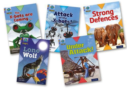 This pack contains 1 set of guided reading notes and 5 reading books, 1 of each of: The X-bots are Coming, Attack of the X-bots, Under Attack!, Lone Wolf, Strong Defences.